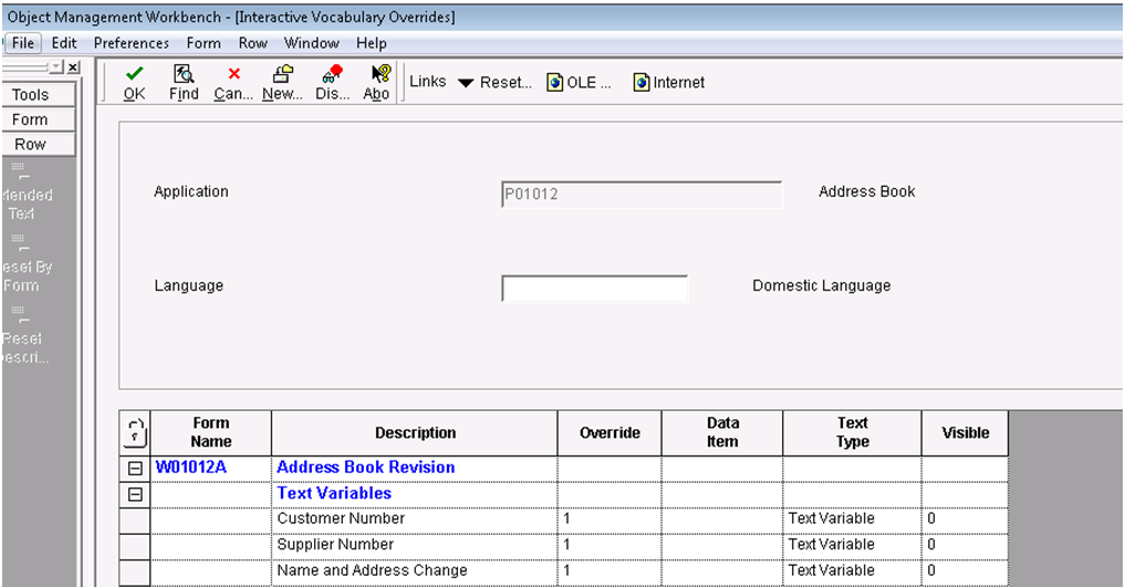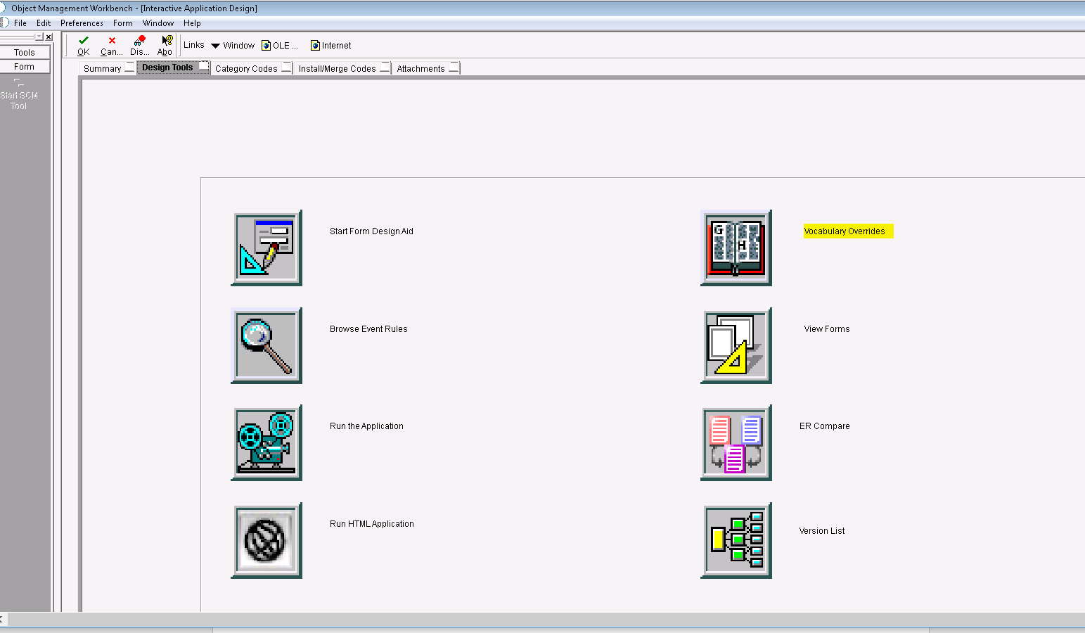 Vocabulary override is a feature provided by the JDE Development Toolkit and used to modify the text that appear in applications and UBEs. This can be used for example to